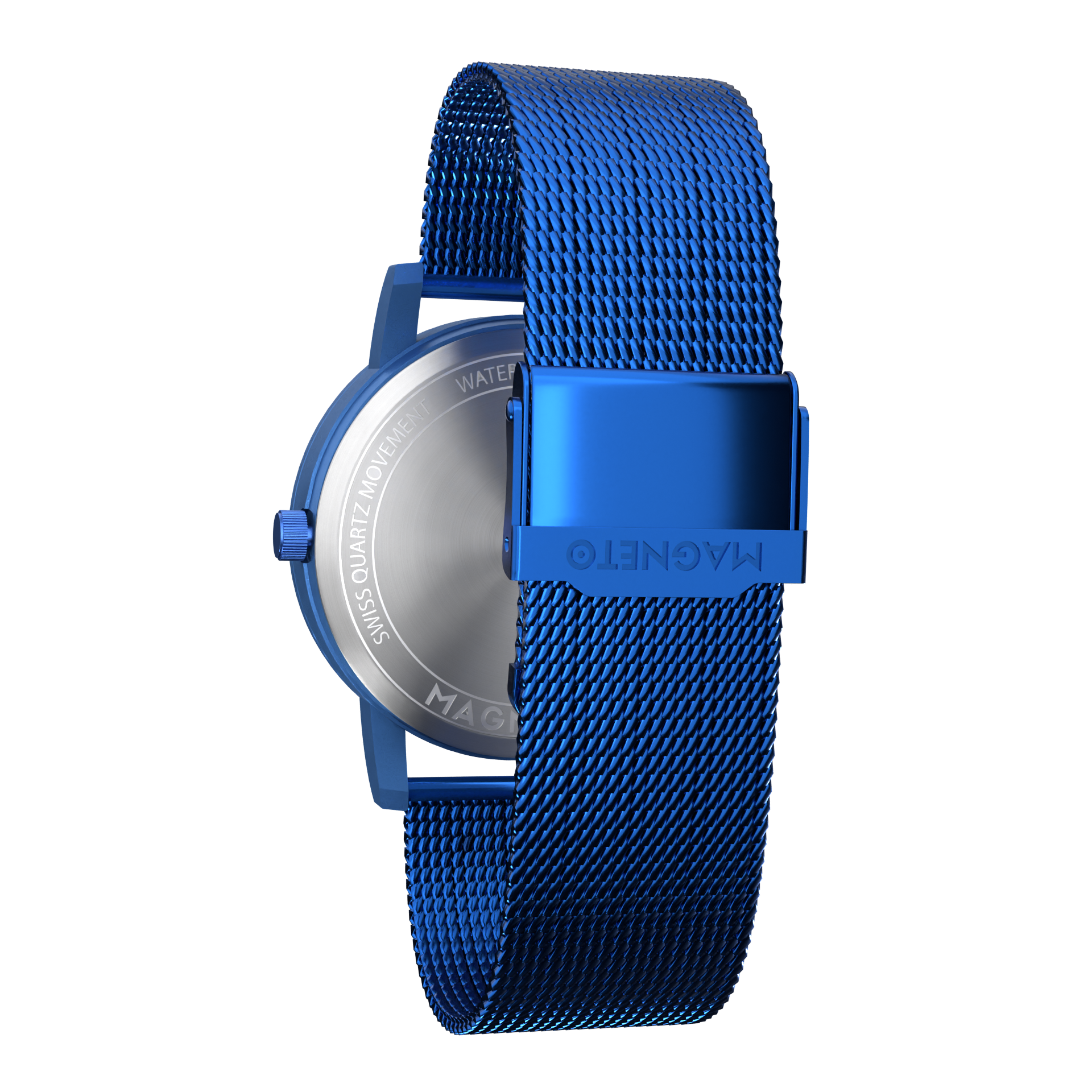 Futuristisch und mutig: Die Jupiter Blue präsentiert sich in einem kräftigen, leuchtenden Blau – vom Gehäuse bis zum Milanaisearmband. Die schwebenden Kugeln ersetzen klassische Zeiger und machen die Uhr zu einem Statement für alle, die Design und Technologie lieben. Auffallen garantiert.