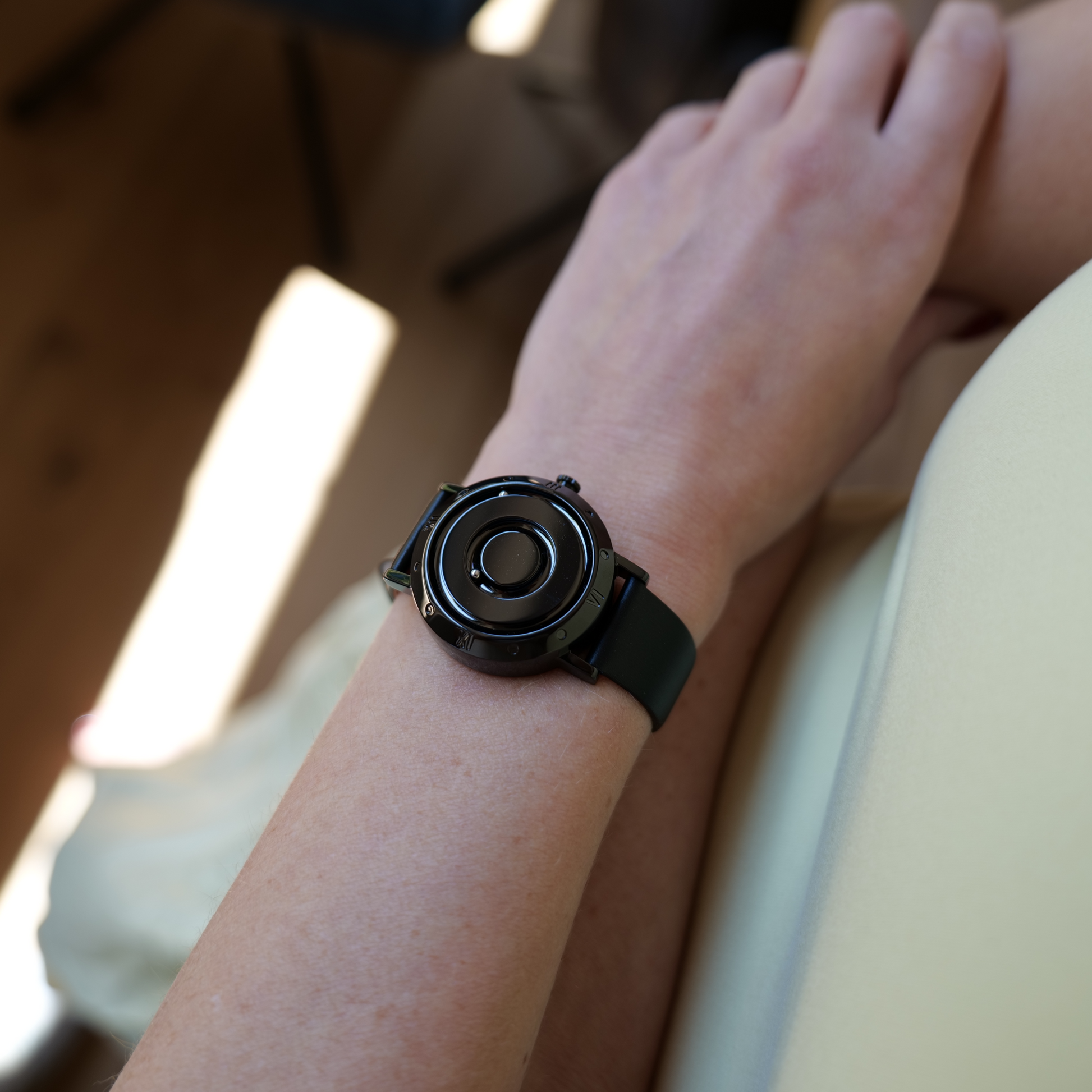 Mit ihrem tiefschwarzen, spiegelnden Zifferblatt verkörpert die Stella Black stilvolle Zurückhaltung und moderne Raffinesse. Das schwarz glänzende Gehäuse aus hochwertiger Alloy unterstreicht den eleganten Look und verleiht der Uhr eine besondere Ausdrucksstärke. Abgerundet wird das Design durch ein passendes schwarzes Satin-Lederarmband, das angenehm weich auf der Haut liegt und sich dezent in jedes Outfit einfügt.