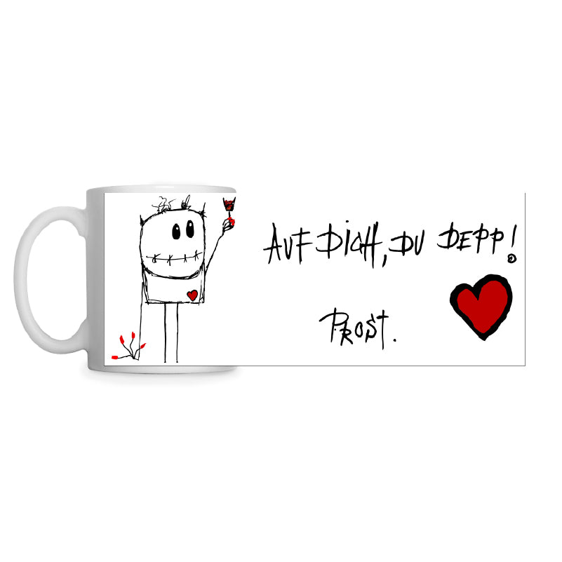Die Keramiktasse „DU DEPP!“ von Inke Hagen bringt Humor und Herz perfekt zusammen – ein Stück Kunst mit Augenzwinkern für deinen Alltag.