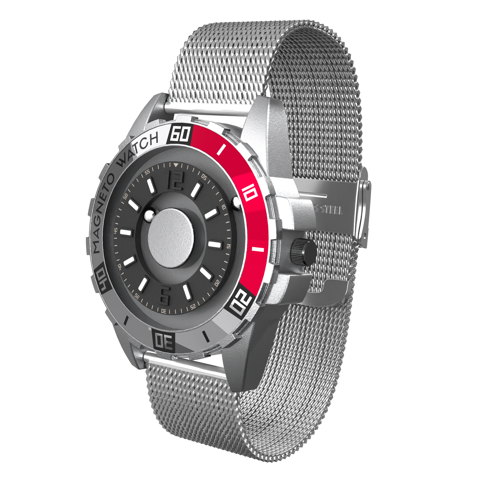 Die Uranus Silver vereint sportliche Dynamik mit moderner Eleganz. Das silberfarbene Gehäuse aus hochwertiger Alloy und die rot-silberne Lünette verleihen der Uhr einen ausdrucksstarken Charakter. Dank der innovativen Magnetzeiger-Technik wird die Zeit auf einzigartige Weise angezeigt. Das stilvolle Milanaisearmband in Silberoptik rundet den Look harmonisch ab. Gehäusedurchmesser: 40 mm, Gehäusehöhe: 13 mm. Perfekt für alle, die sportlichen Stil und technische Innovation lieben.